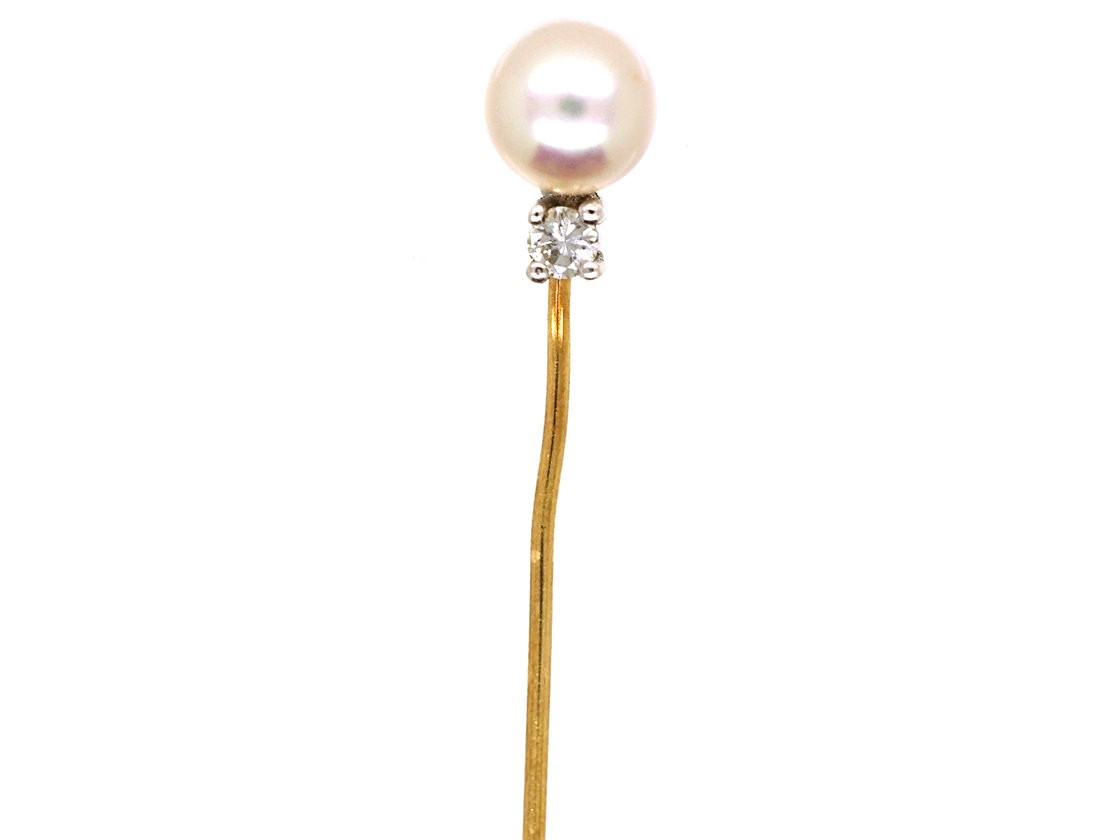 Pearl & Diamond Tie Pin - The Antique Jewellery Company mens pearl tie pin