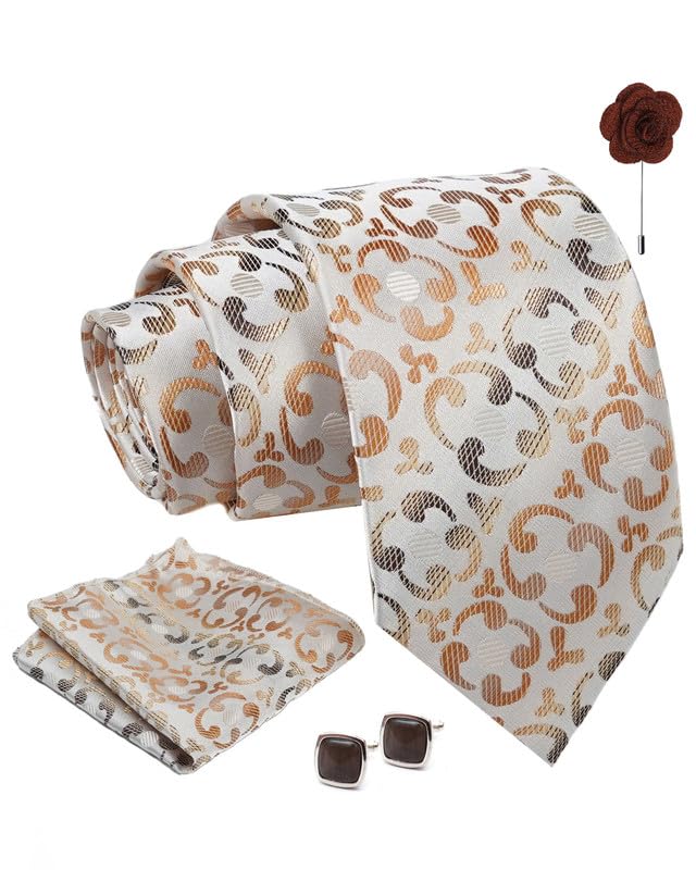 Buy Axlon Beige Geometric Tie For Men â Formal Ties Set With Pocket Square & Tie Pin Clip For axlon ties