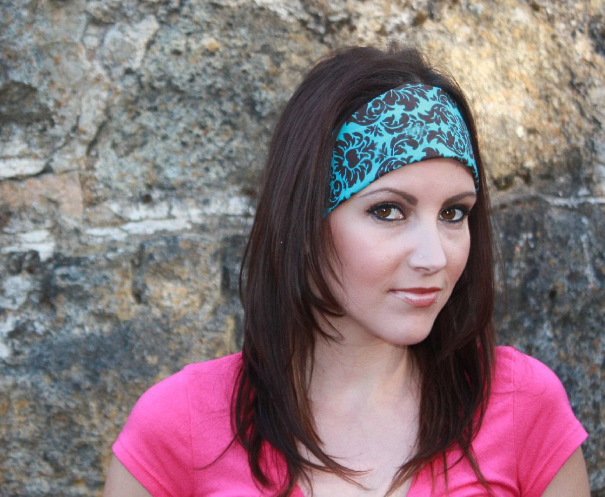 Pre-tied Bandana, Headband- Brown & Turquoise Damask -womens/teens on Luulla tied bandana headband