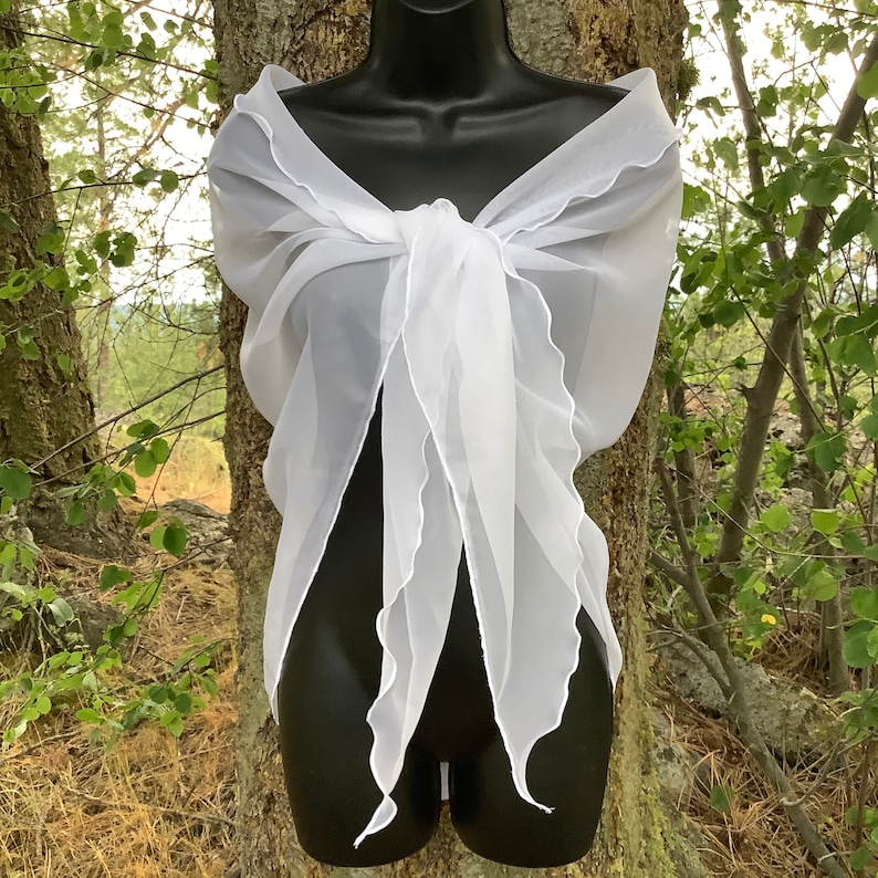 Extra Large White Wedding Shawl for Brides, White Chiffon Triangle Shawl, Large Elegant Wedding large white shawl