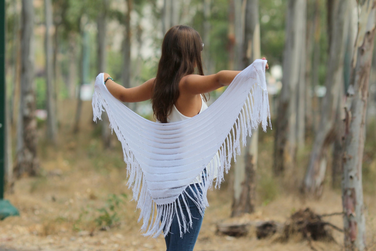 Bohemian Woman Wrap Almond White Shawl Trendy Fall Winter | Etsy womens white shawl wrap