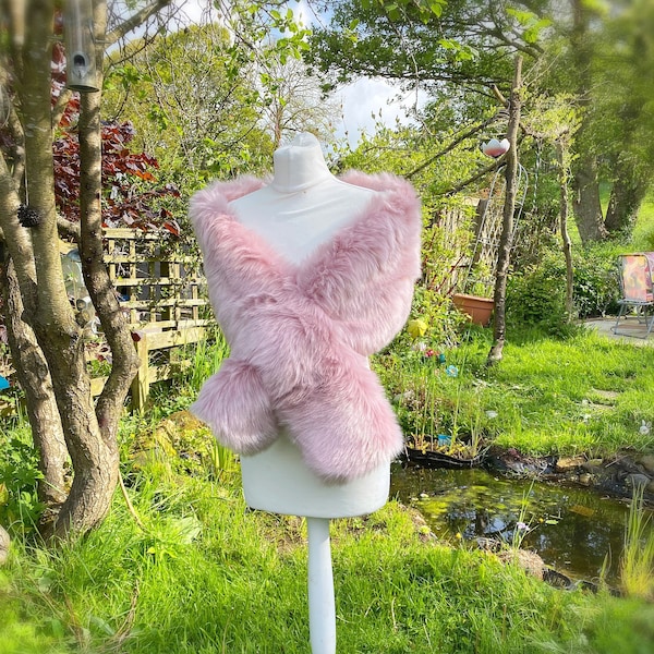 Blush faux fur wrap bridal shawl | Bridal wrap, Faux fur stole, Faux fur wrap