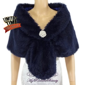Faux Fur Stole, Navy Blue Faux Fur Wrap, Faux Fur Shrug, Bridal Fur Shrug, Wedding Fur Shawl faux fur shawl navy