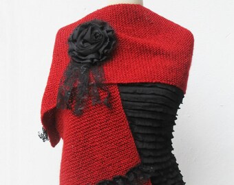 Red Christmas knit shawl scarf women knitted scarf mohair | Etsy