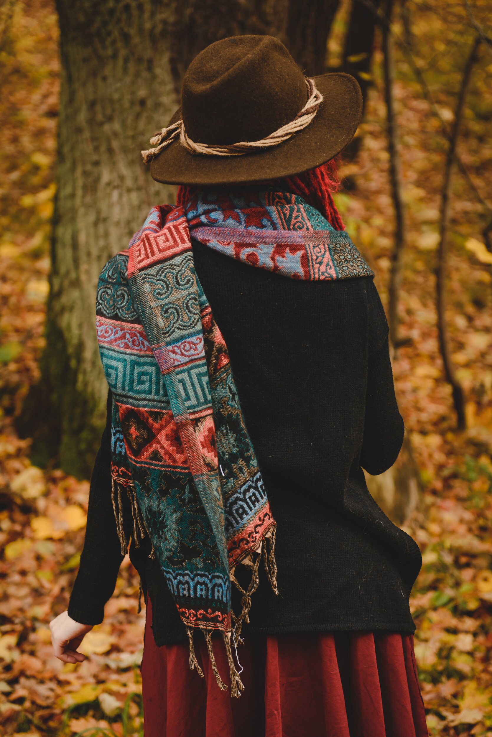 Colorful Indian Shawl With Ethnic Design Extra-long Shawl Tribal-inspired Comfort Wear Forest how to wear an indian shawl
