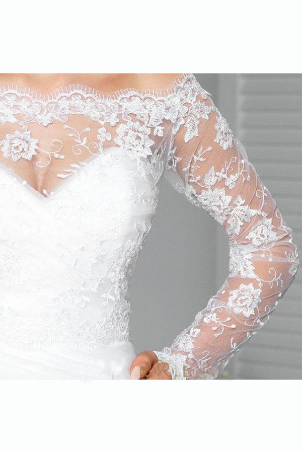 Lace Appliqued Long Sleeve Off-the-Shoulder Bridal Shawl, Sexy Wedding Shawl sleeve shawl