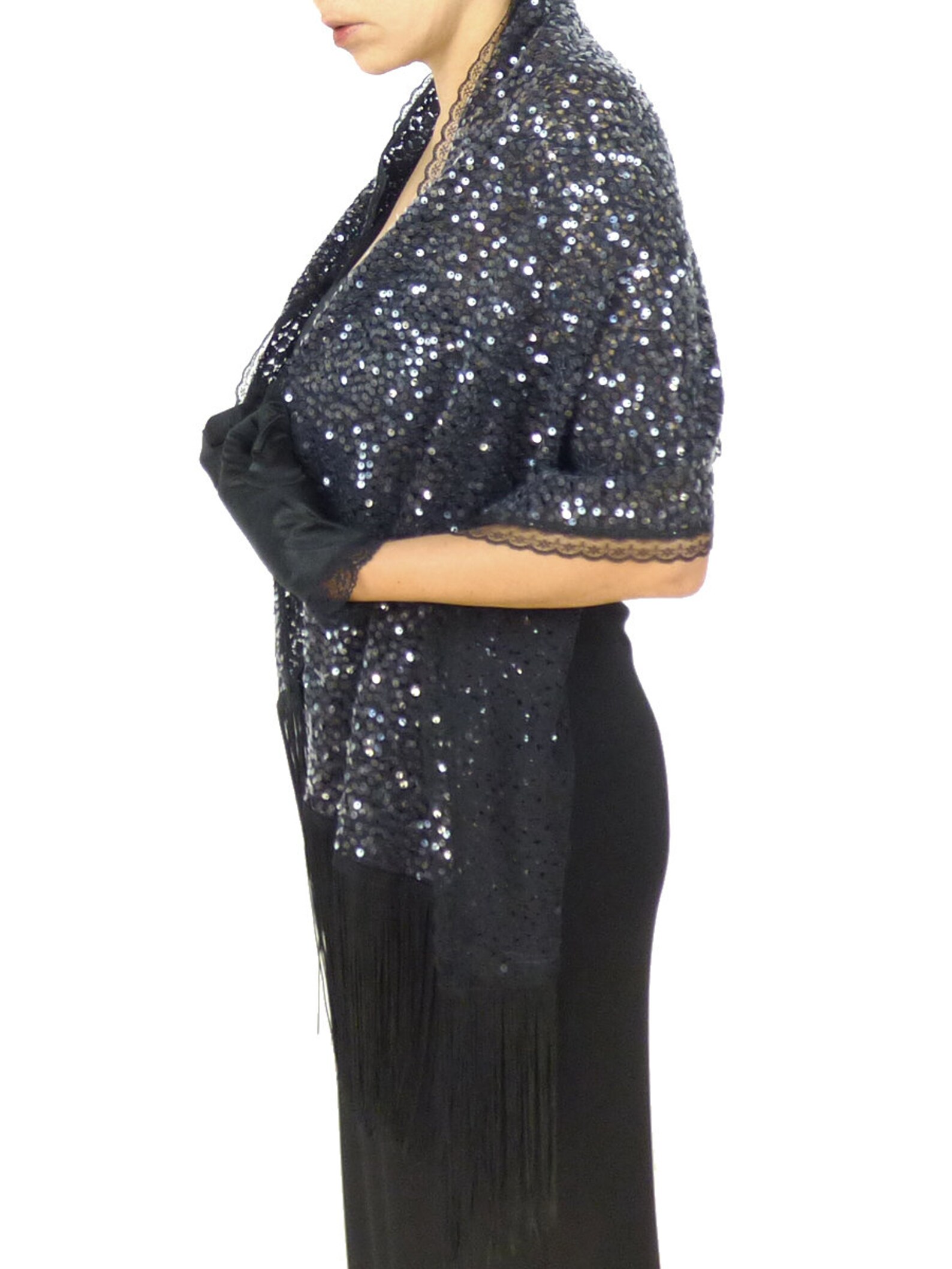 Black Sequin Shawl, Fringe Shawl, Sequin Stole, Sequin Scarf, Black Fringe Shawl, Evening Shawl cocktail shawl