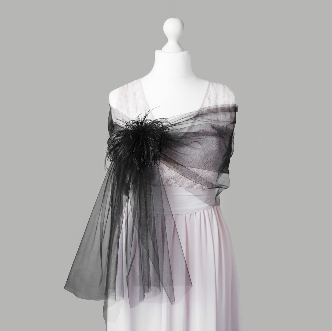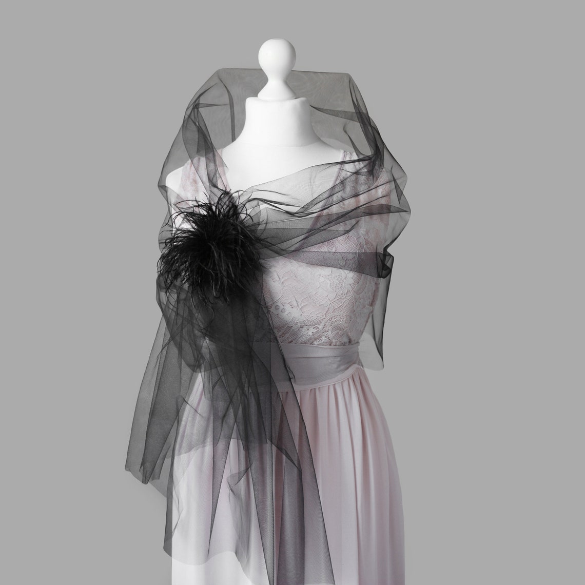Mother of the Bride Tulle Shawl With Ostrich Feather Brooch - Etsy mother of the bride dress with shawl