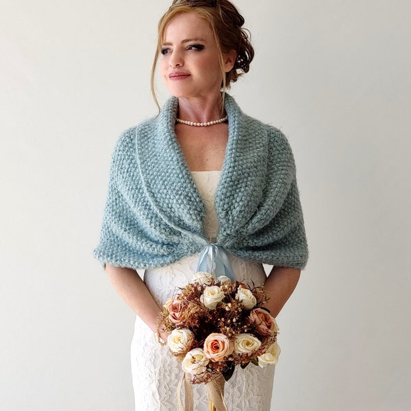 Light Blue Bridal Shawl , Knitted Shawl, Wedding Shawl, Evening Shawl, Cover Up, Stole, Vegan shawl for blue dress