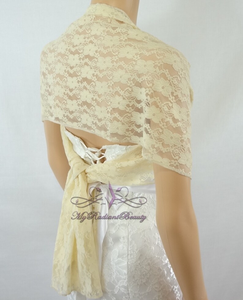 Bridal Lace Wrap, Champagne Lace Shawl, Bridal Silk Lace Shrug, Lace Scarf, Prom Scarf, Scarves