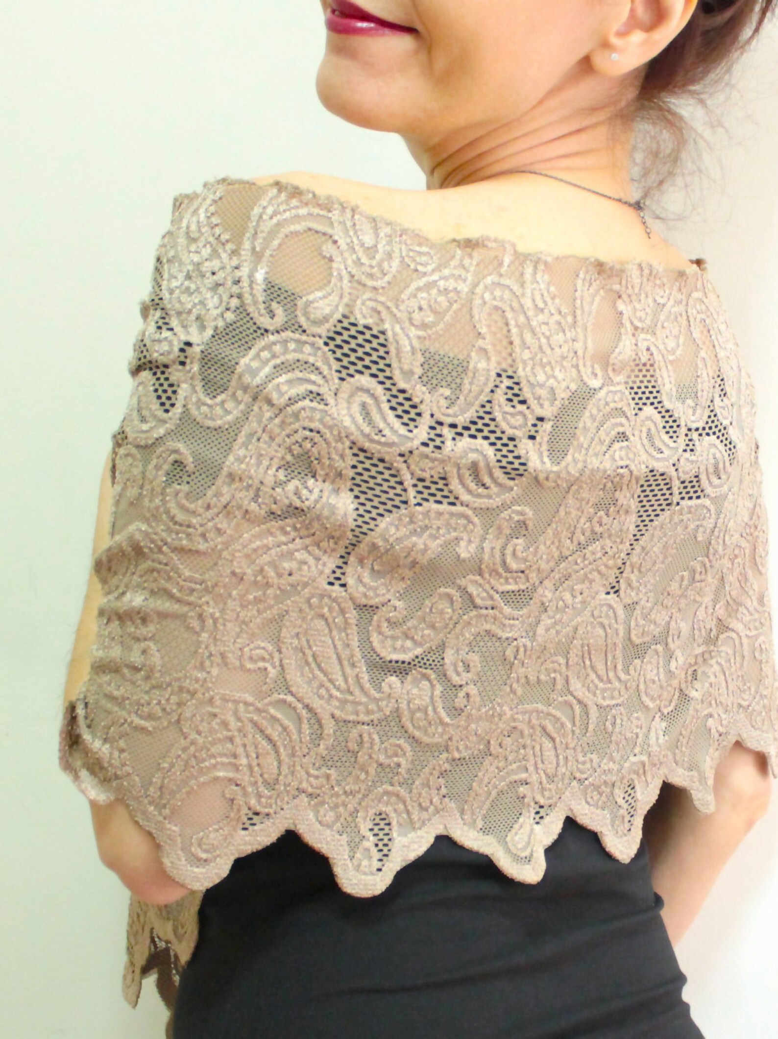 Champagne Lace Loop Shawl With 4 Wearing Suggestions Shawl, Shrug, Scarf and Crisscross. Elegant