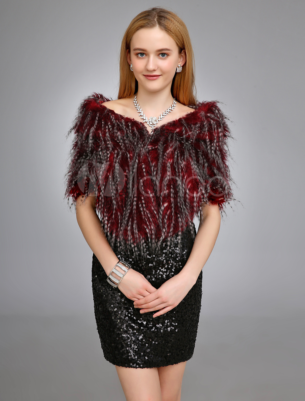 Dark Red Wedding Shawl With Faux Fur - Milanoo.com fur shawl with red dress