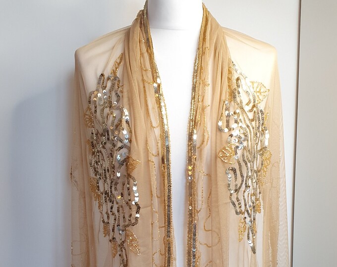 Luxury Gold Sequin Shawl, Gold Sequin Scarf, Party Evening Balls, Gift for Her, Evening Wrap shawl for sequin dress
