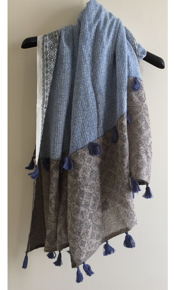 Lightweight Cotton Shawl with Tassels by PoshMeena on Etsy lightweight shawl with sleeves