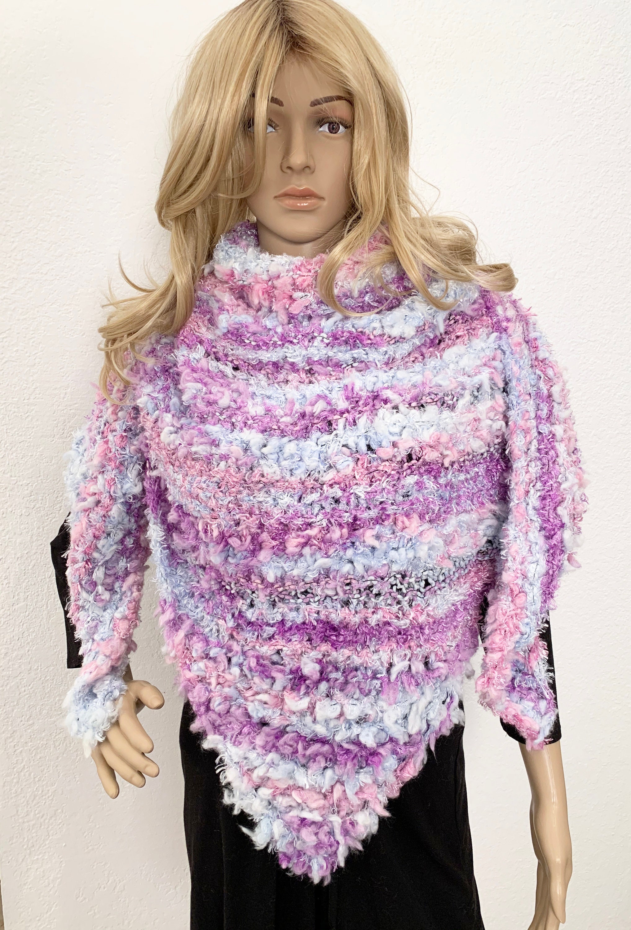 Wool Blend Shawl, Triangle Shawl, Colorful Shawl, Triangle Wrap Shawl Scarf, Hand Knitted Shawl wool blend shawl