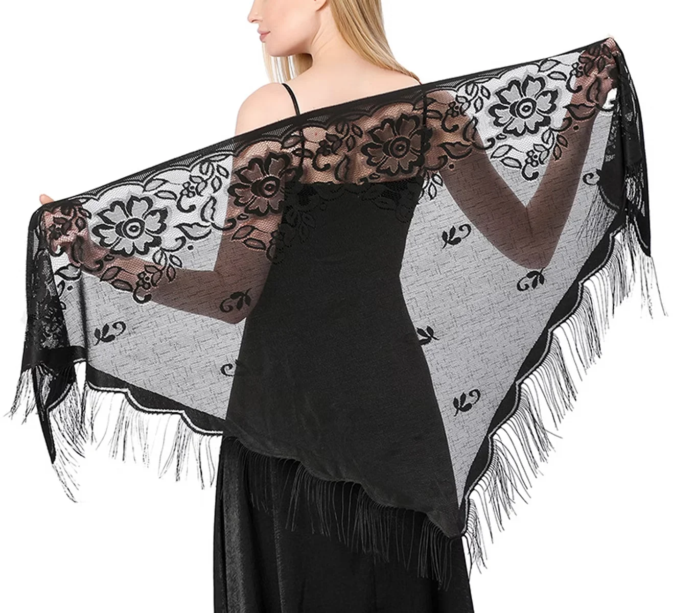MANJIAMEI Womens Triangle Lace Shawls and Wraps for Evening Dresses with Tassels for Evening womens shawls and wraps nearby