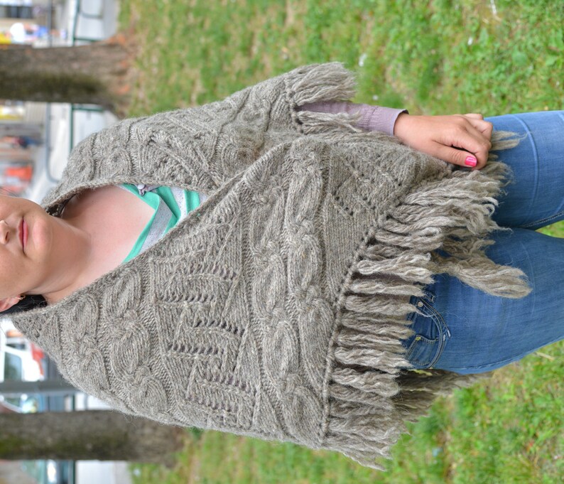Hand knit shawl Chunky knit shawl Gray knitted shawl Womens | Etsy