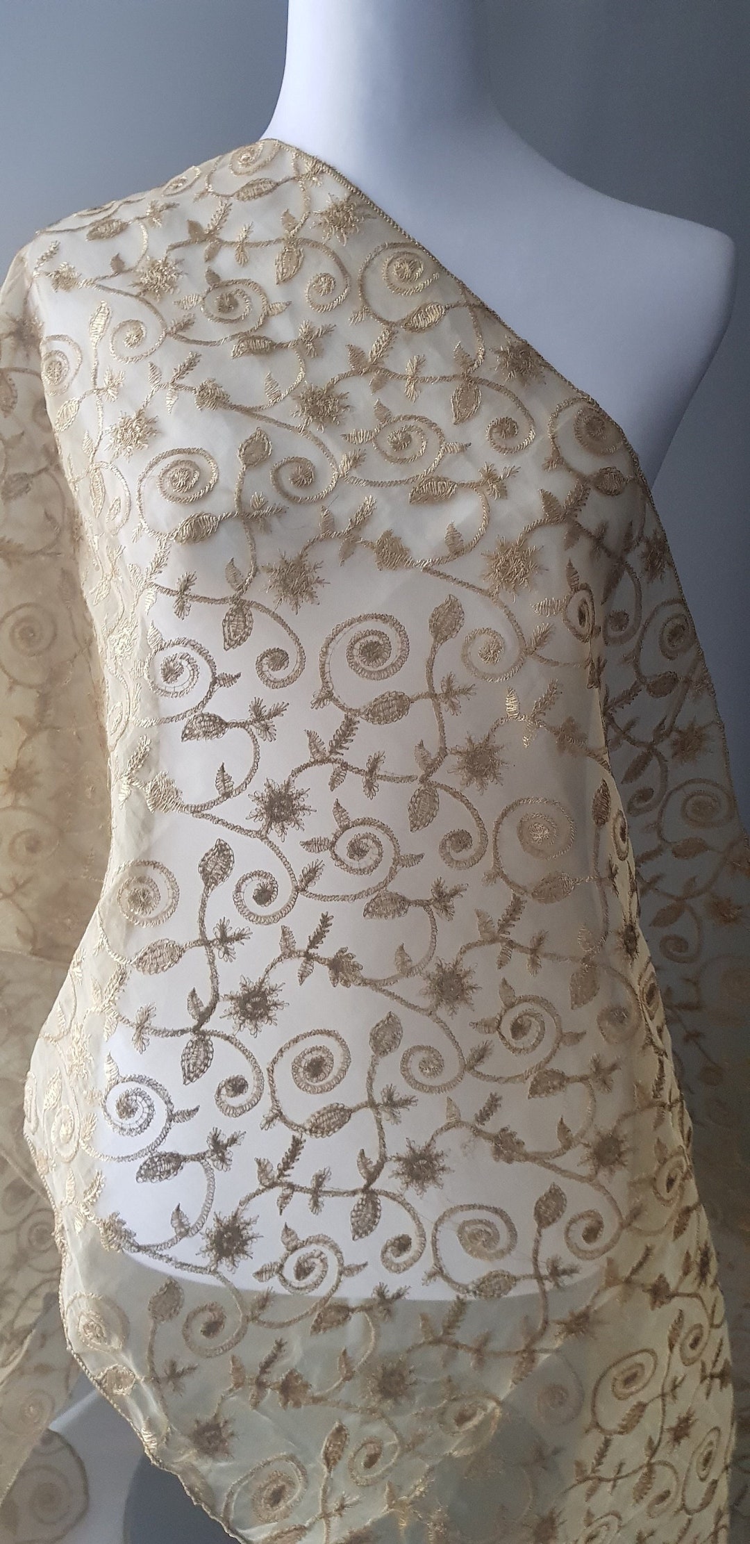 Gold Shawl. Gold Scarf. Faulty, Read Description. Gold Embroidery on Ivory Organza Shawl. Gold womens gold shawl