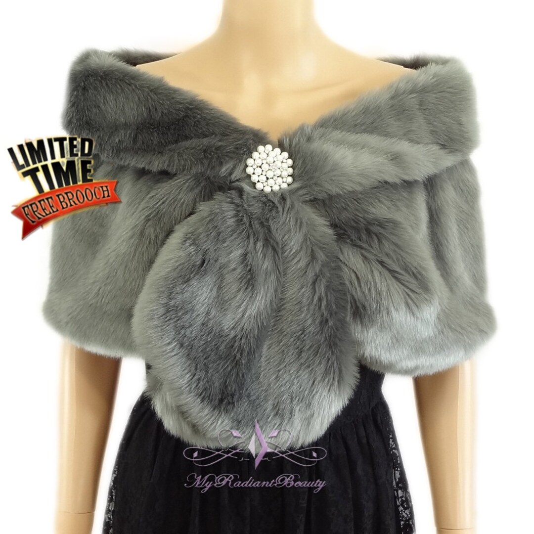 Faux Fur Stole, Gray Faux Fur Wrap, Wedding Shawl, Bridal Fur Wrap, Faux Fur Shrug, Faux Fur faux fur shawl stole