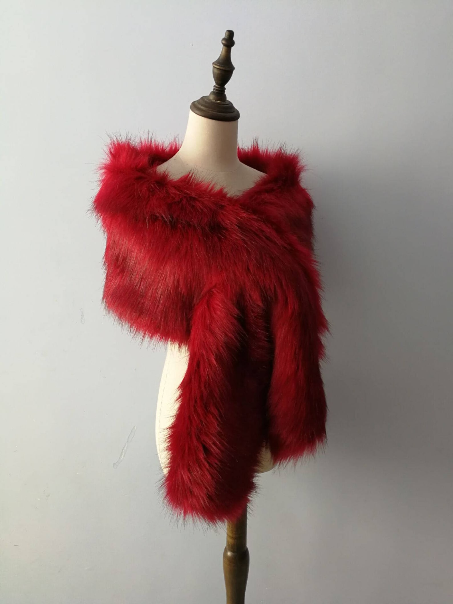 Red Wedding Shawl Faux Fur Bridal Stole Red Faux Fur Wrap Bridal Bolero Fur Shawl Cape Red faux fur shawl red