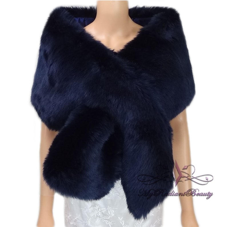 Faux Fur Stole, Navy Blue Faux Fur Shawl, Faux Fur Wrap, Fur Stole, Bridal Fur Shrug, Fox Fur fur shawl navy