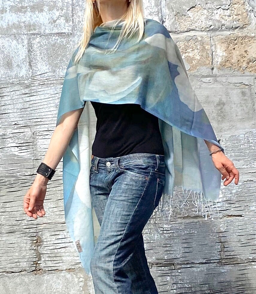 Blue Shawl, Floral Shawl, Shawl Gift for Mom, Rose Scarf, Womens Shawl or Wrap, Shawl for Women