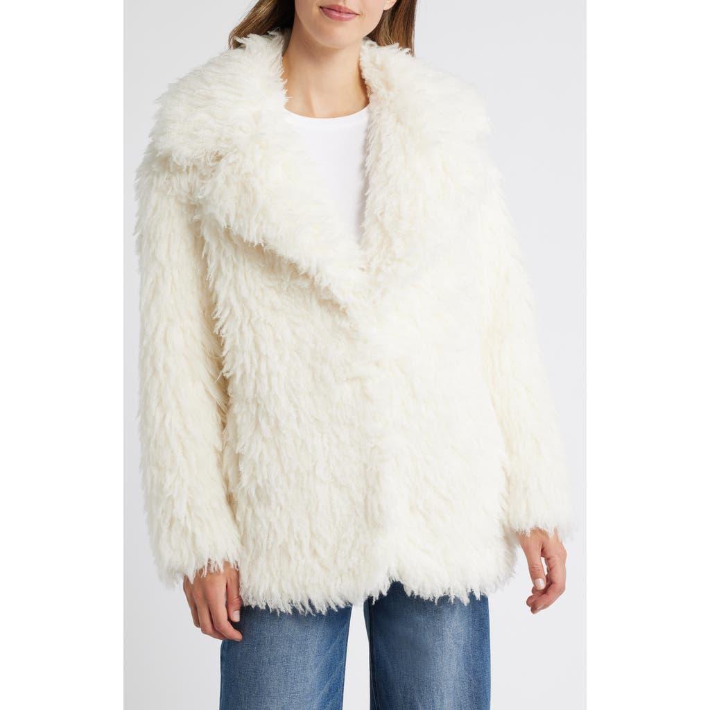 Lucky Brand Shawl Collar Shaggy Faux Fur Jacket in White | Lyst faux fur shawl jacket