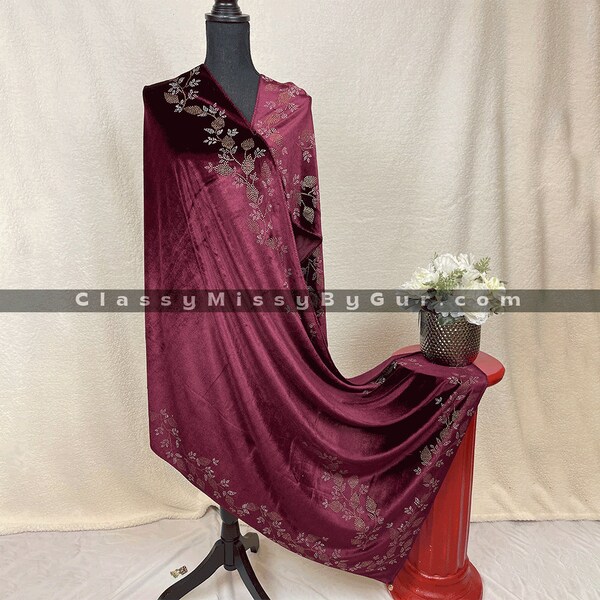 Pakistani Velvet Shawl, Wrap, Scarf,pakistani Embroided Velvet Shawl, Velvet Shawls and Scarf