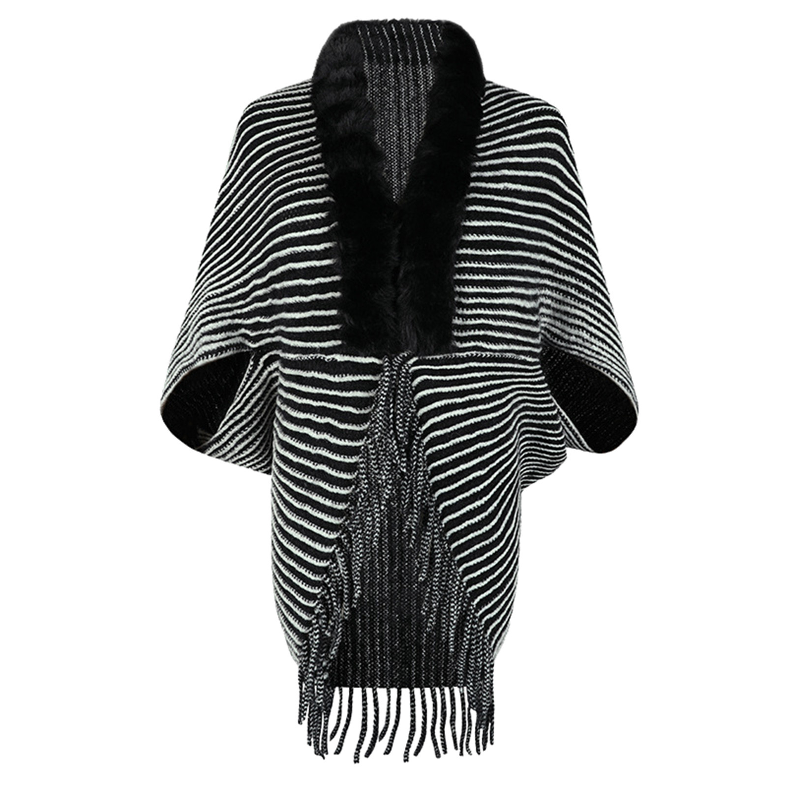 HSMQHJWE Wolf Pelt Coat Shawl Wraps For Women Plus Women Collar Striped Cape Tassel Shawl Women womens shawl coats