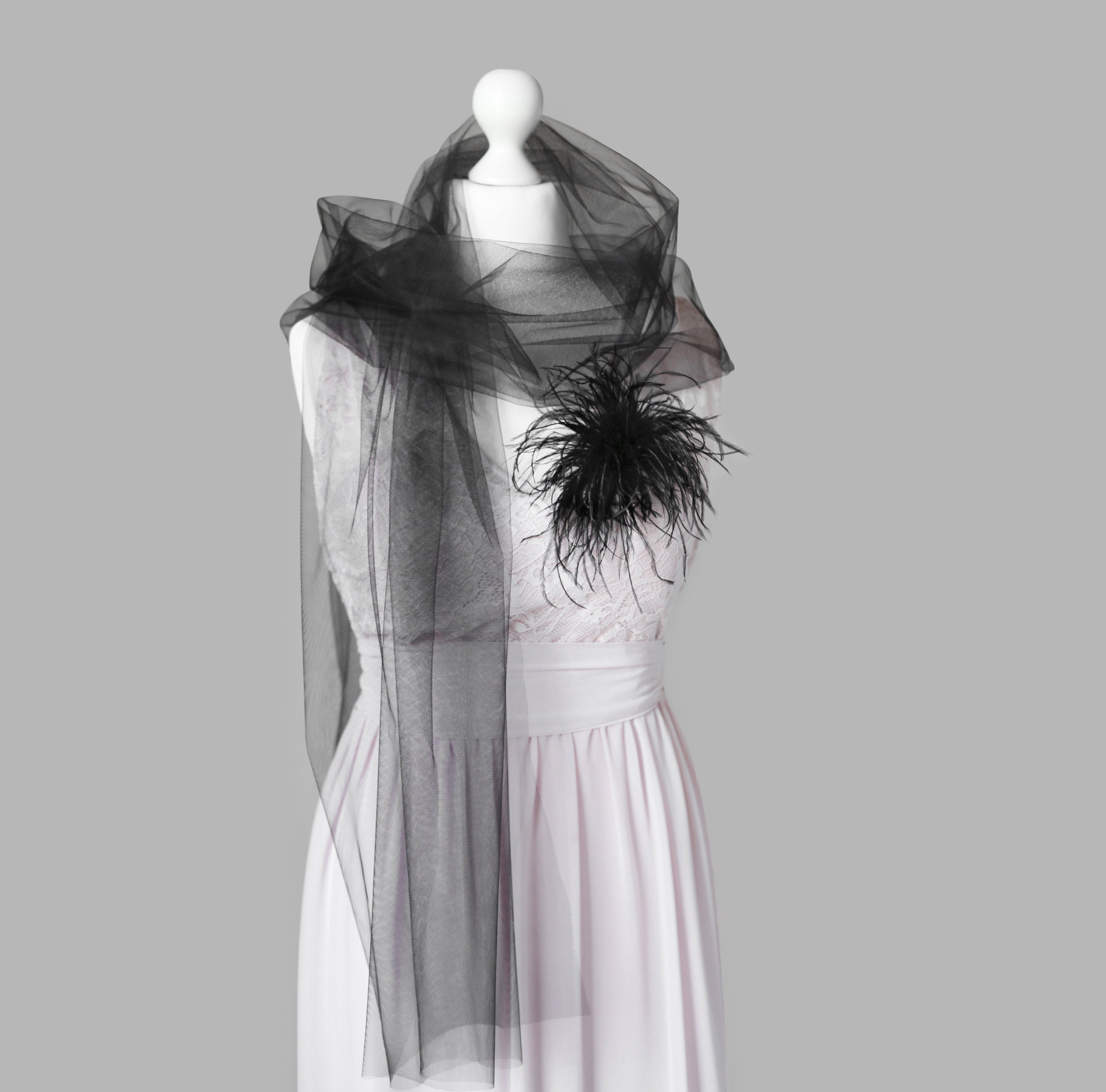 Mother of the Bride Tulle Shawl With Ostrich Feather Brooch - Etsy mother of bride shawl