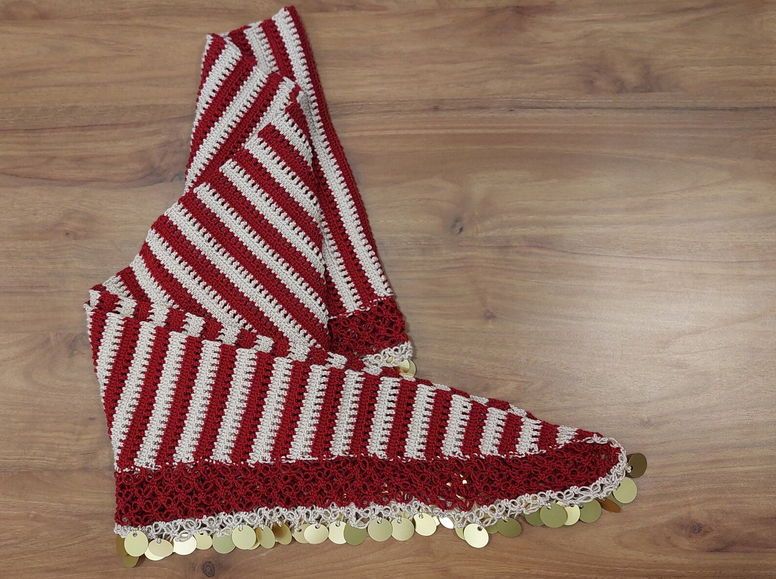 A Narrow Triangular Shawl in Mink and Burgundy Stripes With Sequins on the Edge. - Etsy