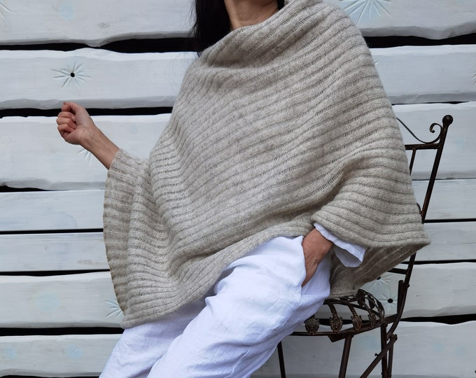 Wool Shawl Knitted Poncho Elegant Shawl Wrap for Women Woolen Shawl Knit Wrap off White Shawl woolen poncho shawl