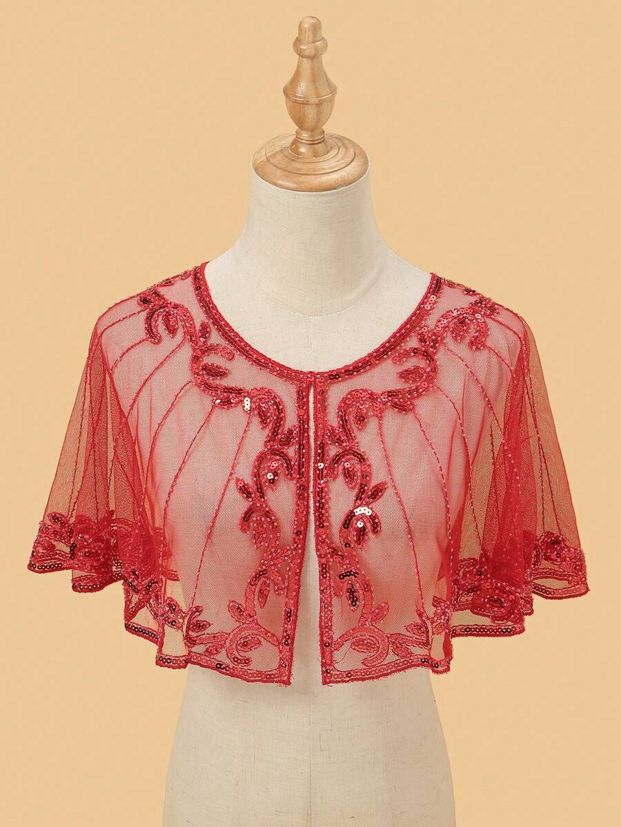 1pc Thin Shawl Poncho Topper With Shiny Sequin And Lace Detailing | SHEIN USA thin poncho shawl