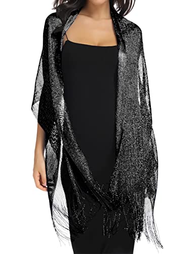 Silver Shawl for Women, vimate Glittering Metallic Shawl Scarf and Wraps for Evening Patry