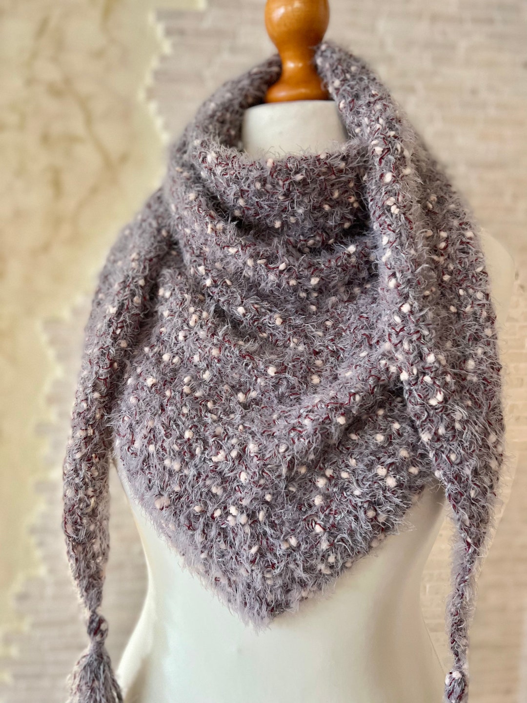 Triangular Very Soft Shawl With Tassels / Gray Cowl With - Etsy small triangular shawl