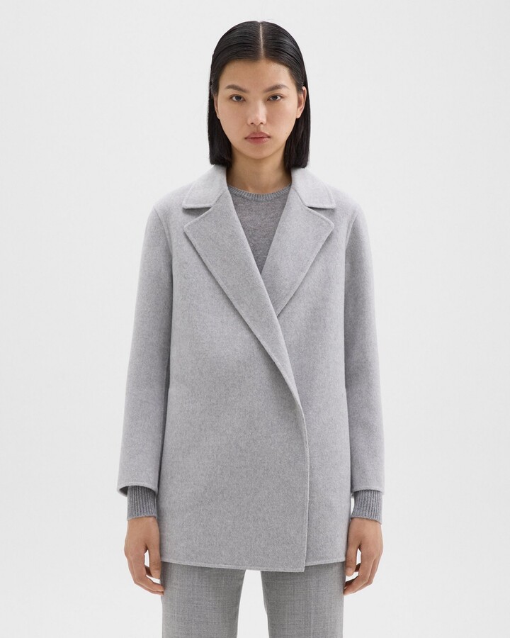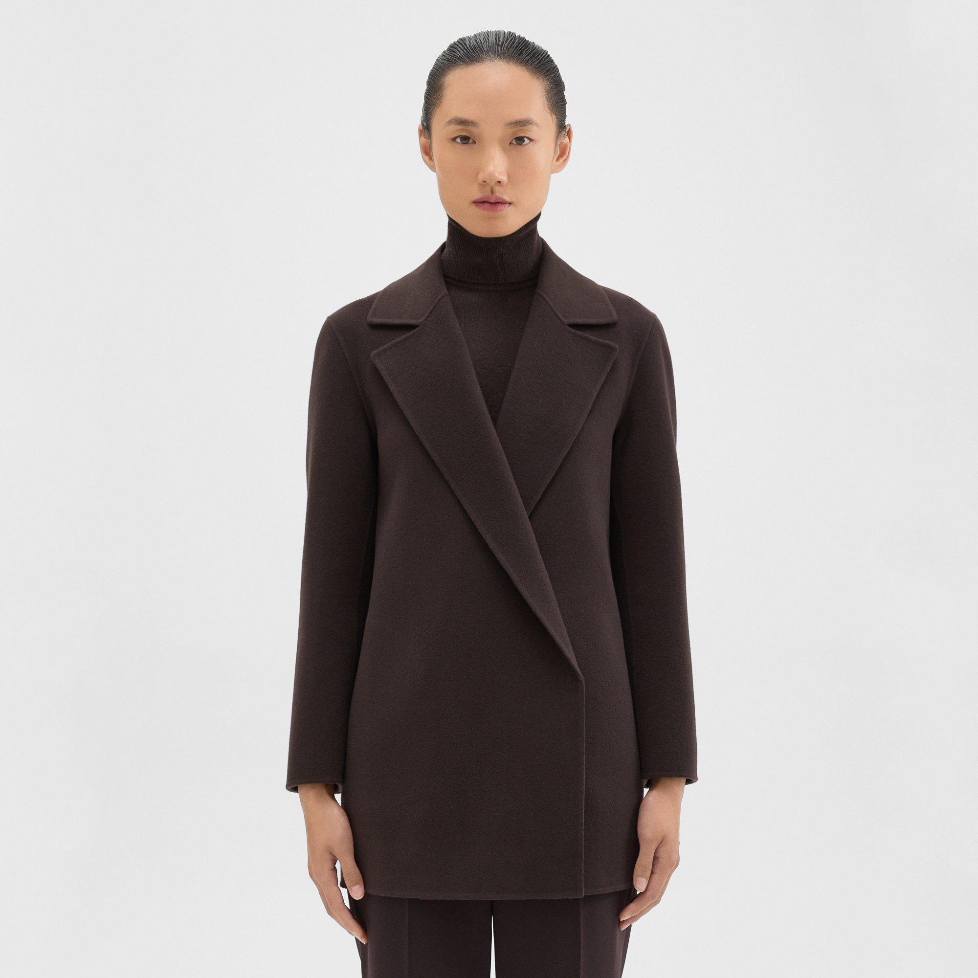 Black Double-Face Wool-Cashmere Clairene Jacket | Theory | Cashmere coat, Camel coat outfit clairene shawl jacket in double face wool cashmere