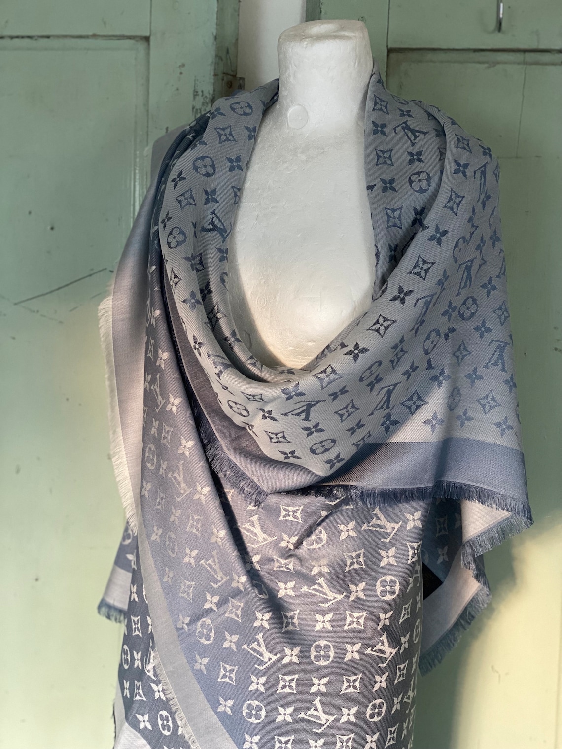 Louis Vuitton Silk Wool Monogram Shawl Anthracite â Coco Approved Studio louis vuitton monogram v fur shawl