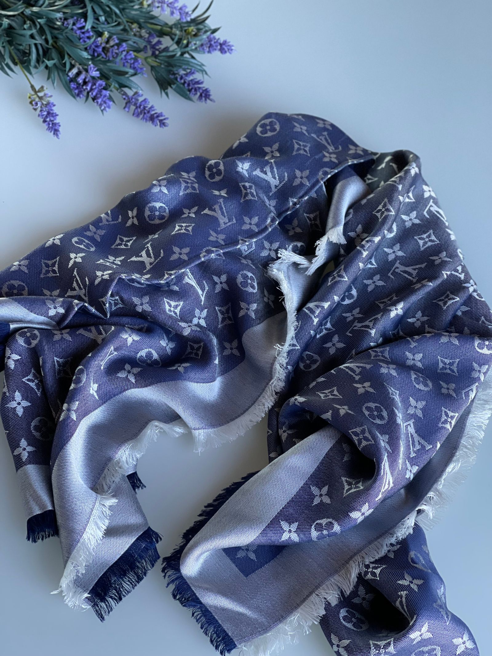 LOUIS VUITTON Silk Wool Monogram Denim Shawl Blue 1408281 | FASHIONPHILE louis vuitton shawl blue