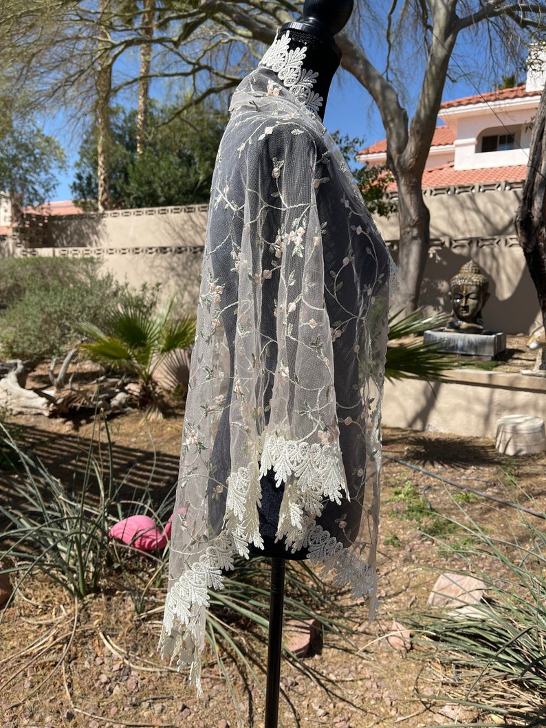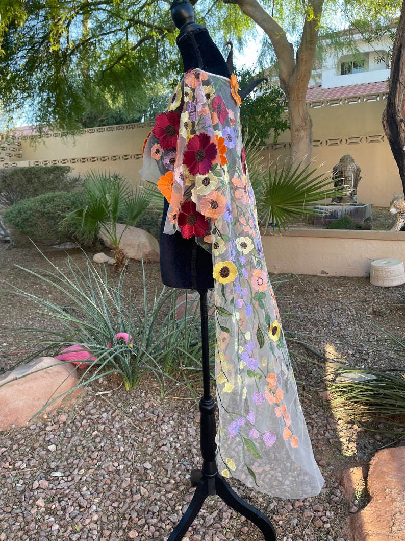 Designer Embroidered Shawl Floral Tulle Cape Ivory Cape - Etsy designer cape shawl