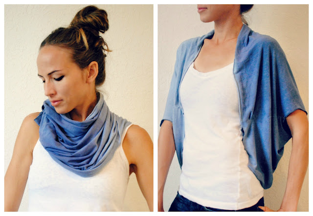 Trash To Couture: DIY Convertible Shawl/Shrug how to wear shawl as shrug