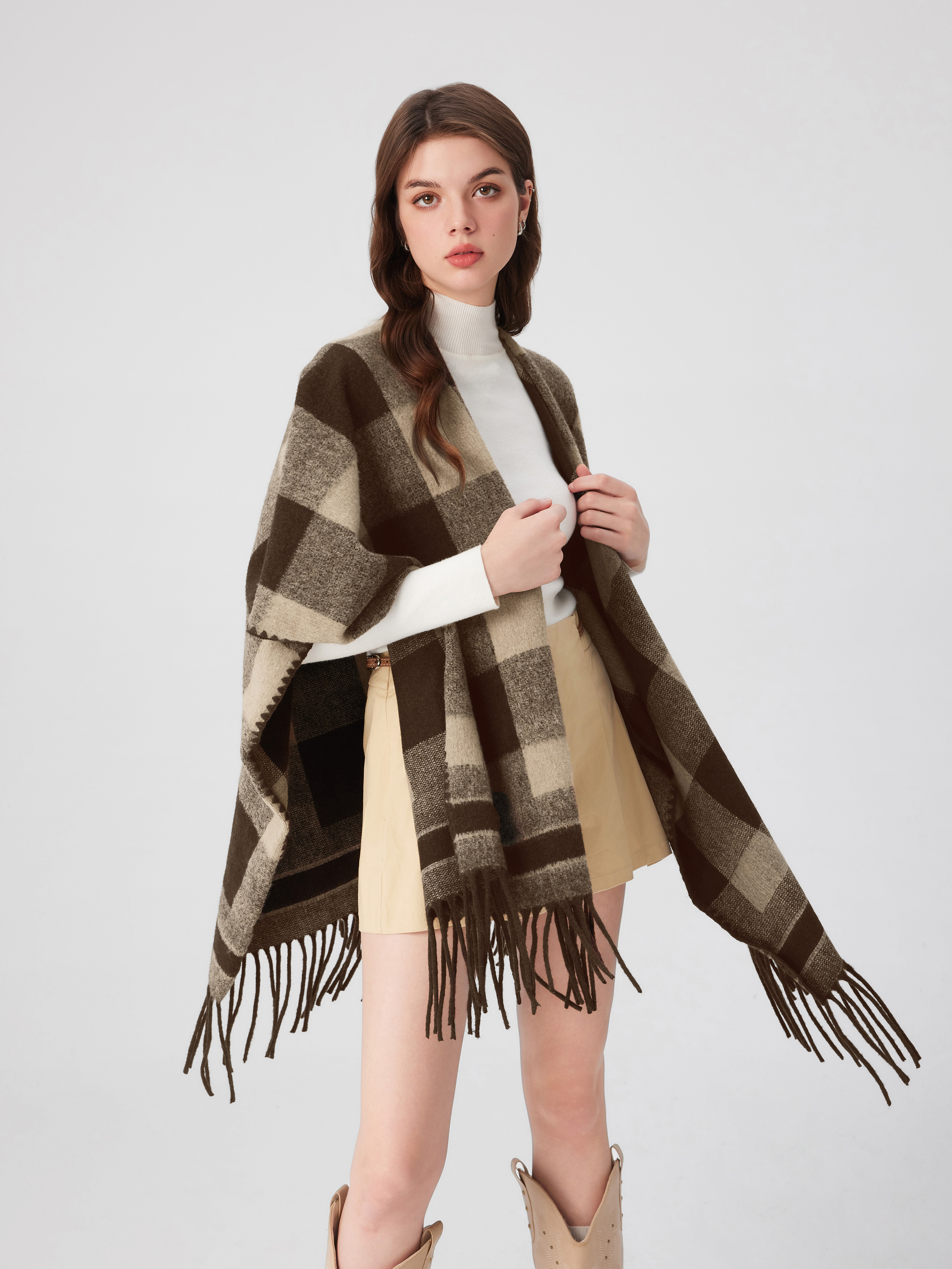 Acrylic Fiber PLAID TASSEL SHAWL For School Daily Casual Coffee Shop Work tassel shawl