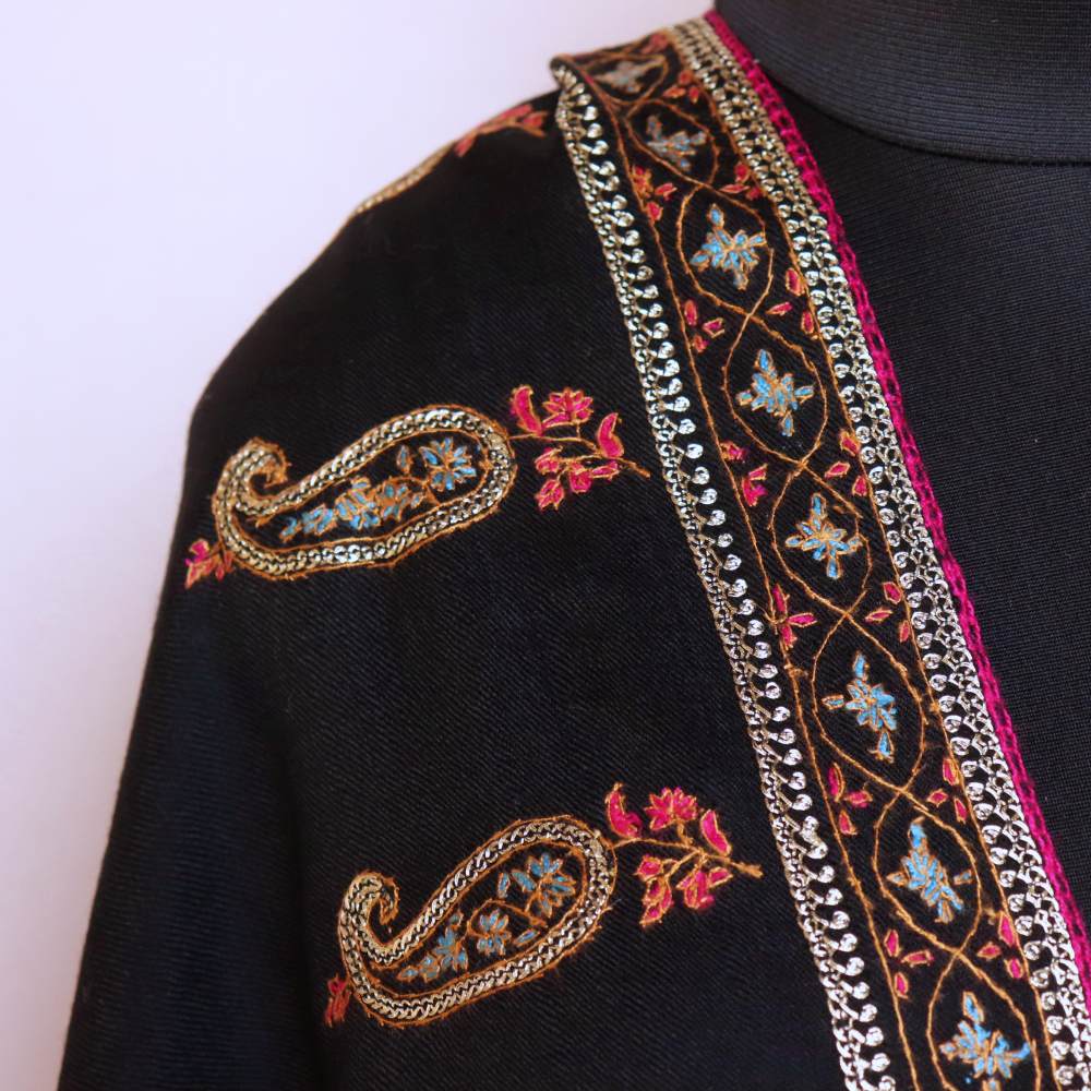 Kashmiri Shawl with Hand Tilla and Sozni Work Black Badaam Booti - Muskaan Collection - Gyawun kashmiri hand work shawl