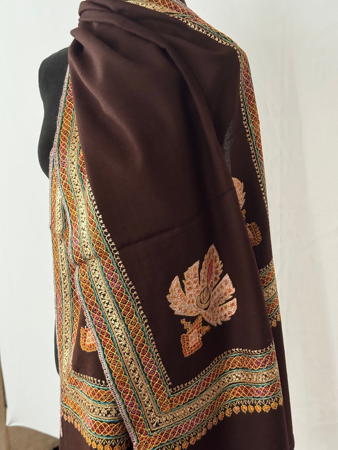 Authentic Kashmiri Tilla Embroidered Purewool Pashmina Shawl Wrap,thick Border Hand Embroidery kashmiri tilla work shawls online