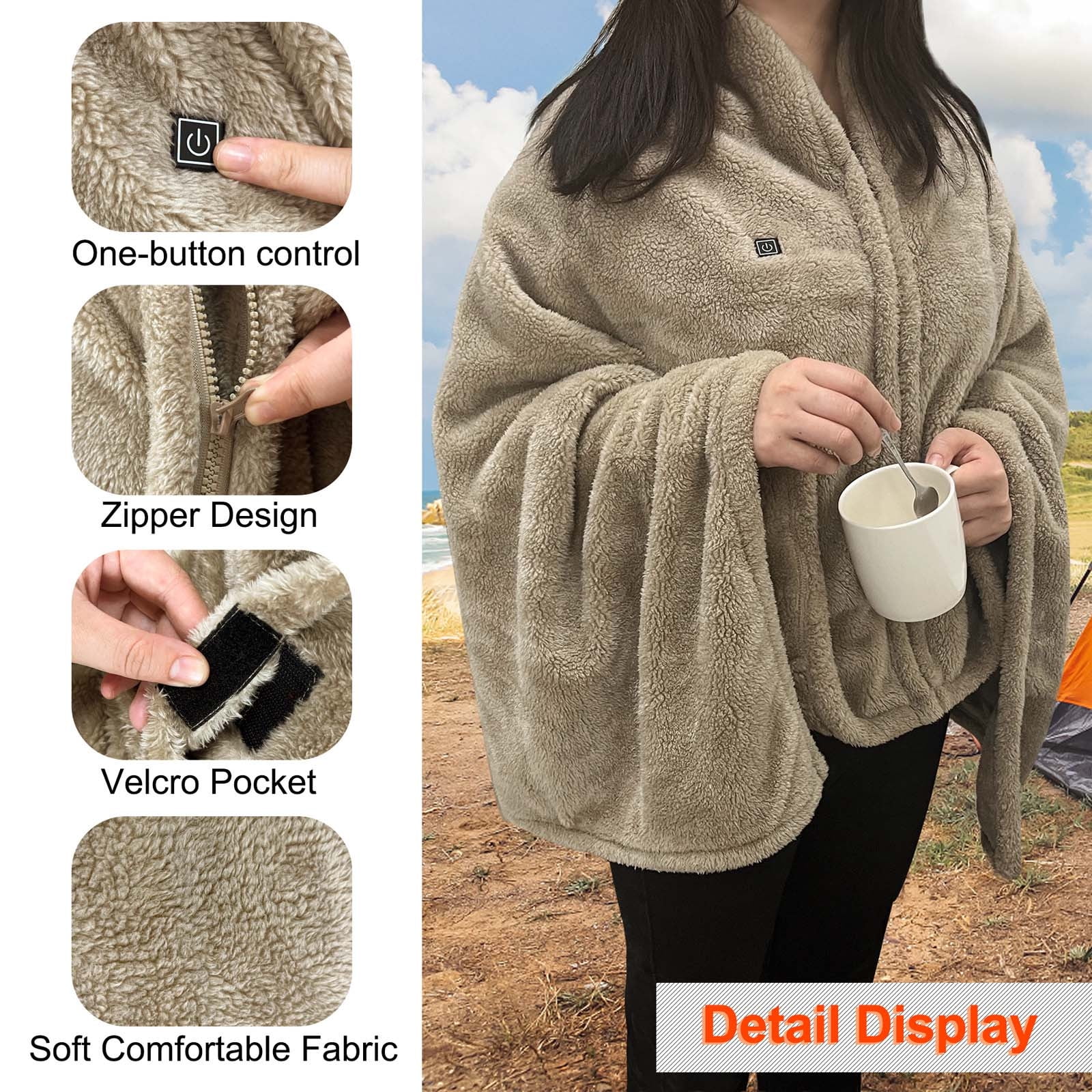 Electric Blanket Heated Wearable Shawl - Heating Hoodie Throw Poncho with 3 Heating Levels wearable shawl