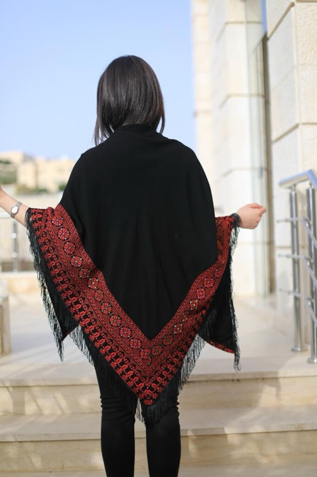 Shawl Palestinian Embroidery Black and Red Tatreez - Etsy palestinian shawl