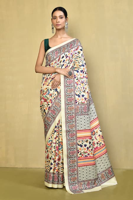 Buy Multi Color Pashmina Printed Vintage Floral Jaal Saree And Shawl Set For Women by Nazaakat shawl for saree