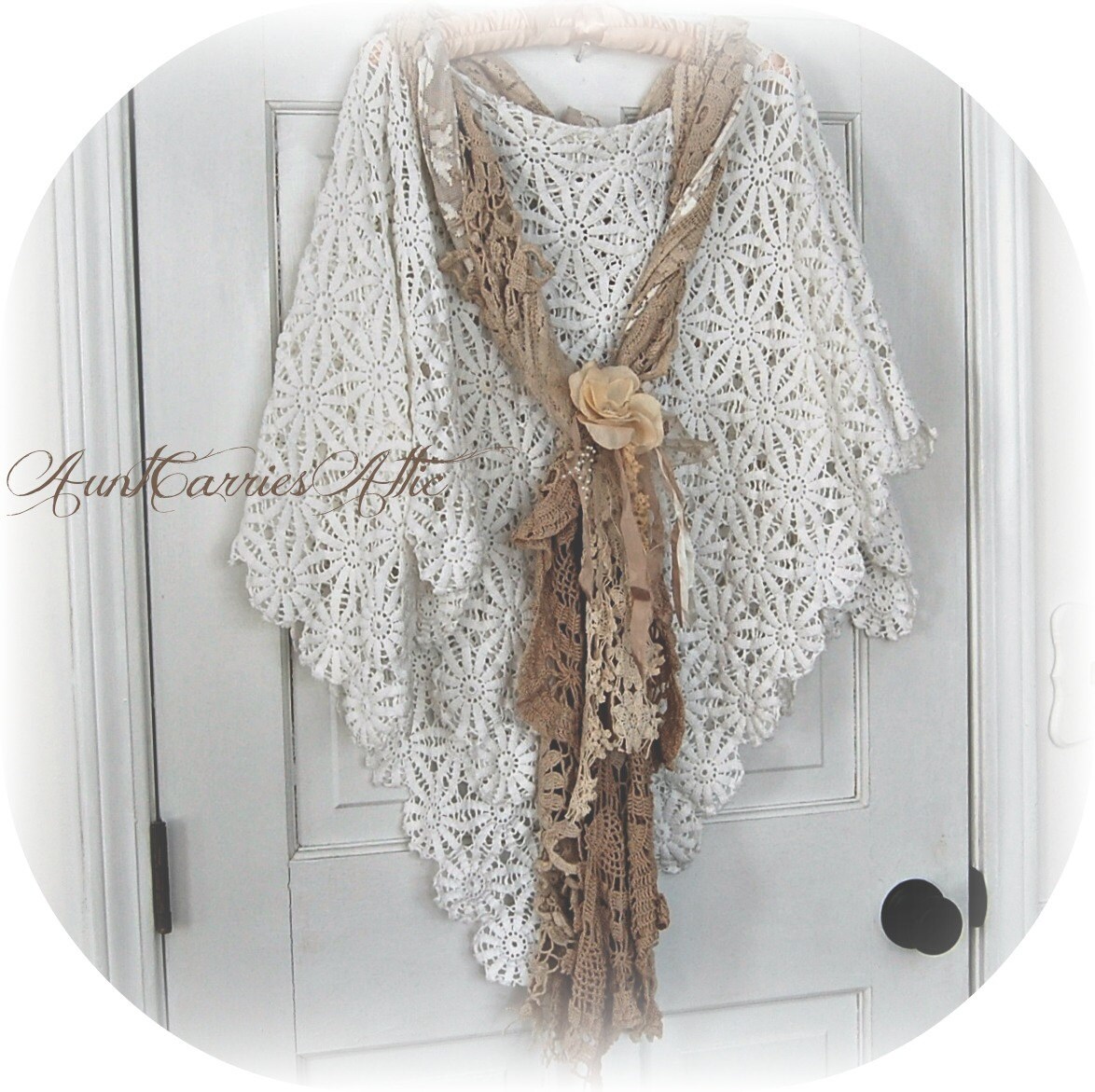 Rustic Tattered Shawl and Scarf Repurposed Doilies Vintage tattered shawl