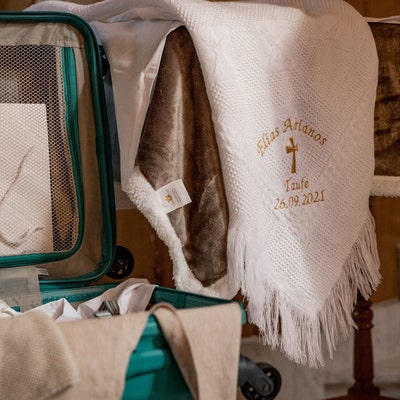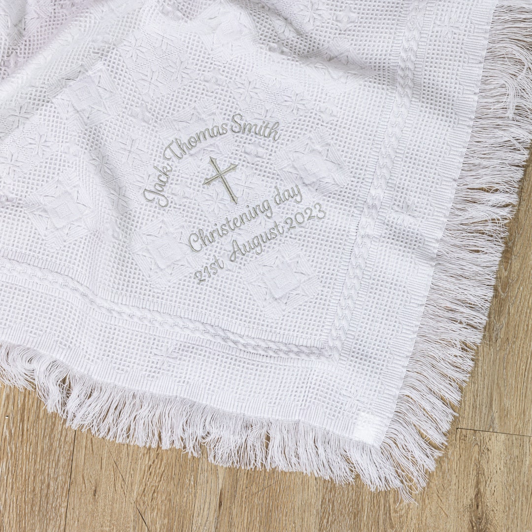Personalised Christening Baptism Shawl Blanket With Big Cross Embroidered in Colour of Your personalised baptism shawl