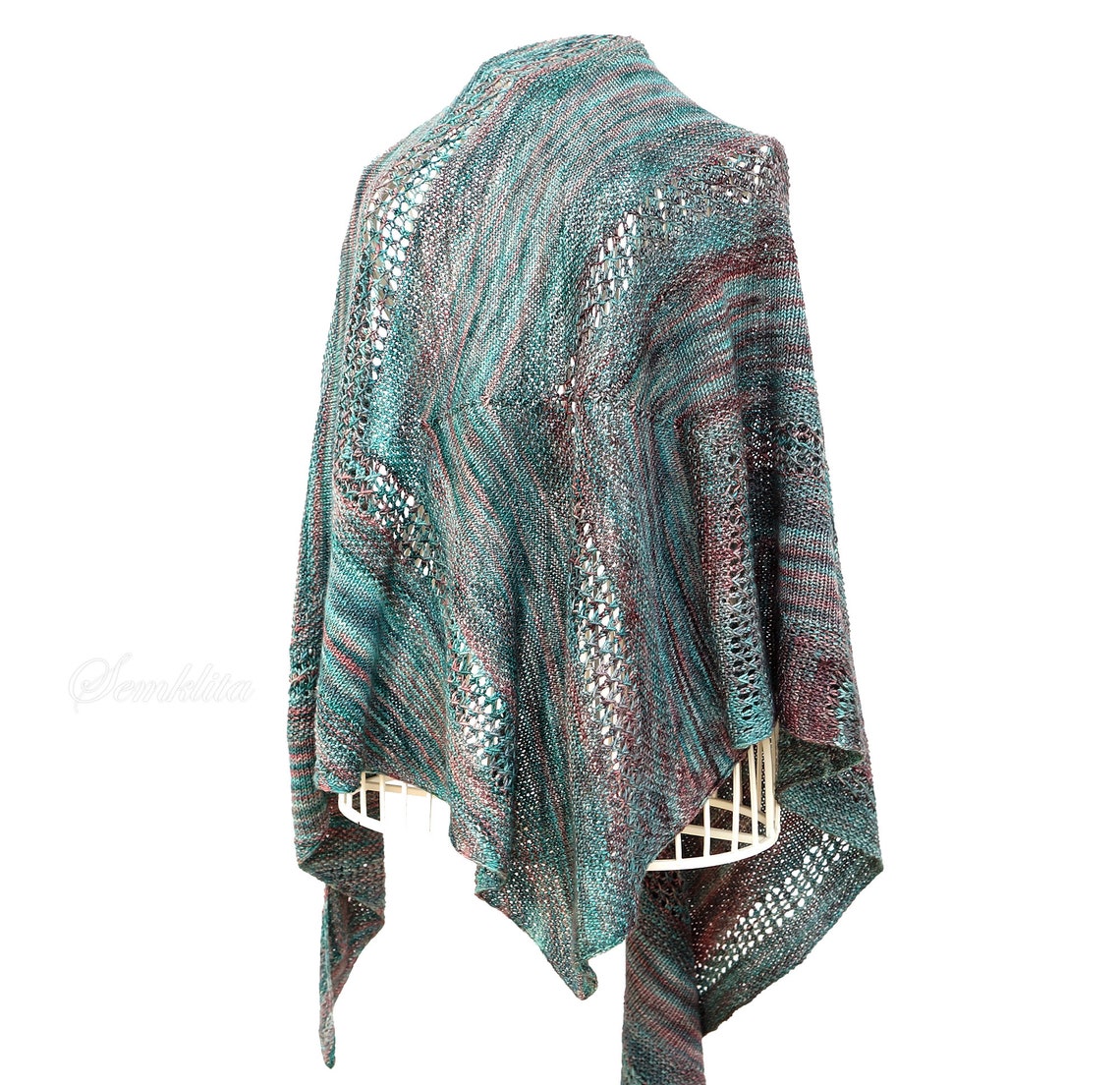 Knit Shawl, Oversized Lace Shawl, Extra Fine Merino Wool Shawl, Hand Dyeing Yarn, Triangular oversize shawl