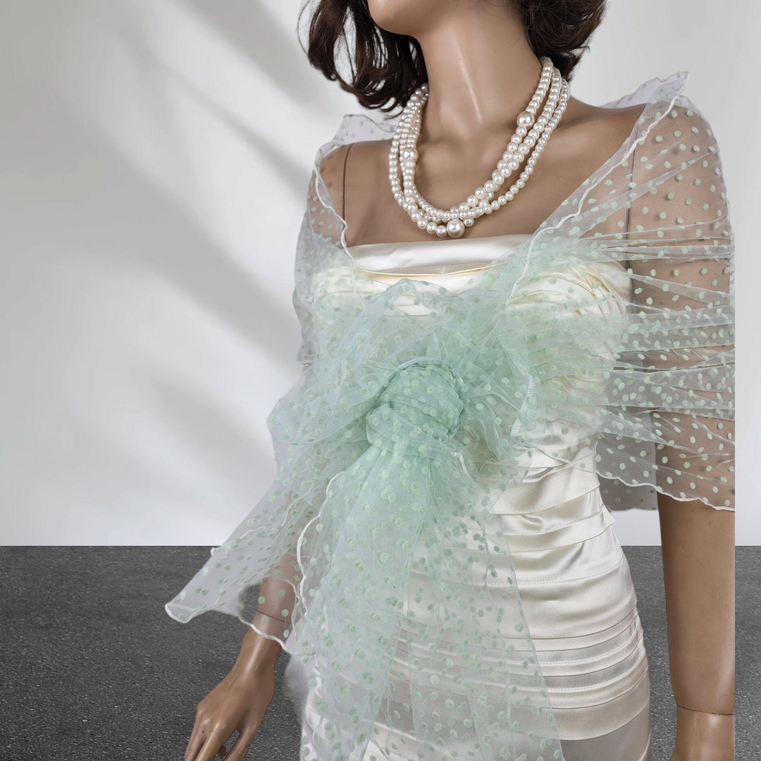 Oversize Shawl, Mint Green Tulle Stole Shawl, Mint Dotted Wrap Shrug, Hands Free Shawl, Blue oversize shawl